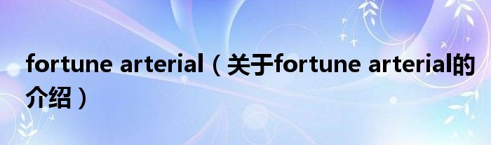 大家好,小新來(lái)為大家解答以上的問(wèn)題。fortune arterial,關(guān)于fortune arterial的介紹很多人還不知道,現(xiàn)在讓我們一起來(lái)看看吧!