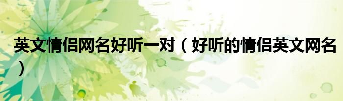 大家好,伊人來為大家解答以上問題。英文情侶網(wǎng)名好聽一對,好聽的情侶英文網(wǎng)名很多人還不知道,現(xiàn)在讓我們一起來看看吧!