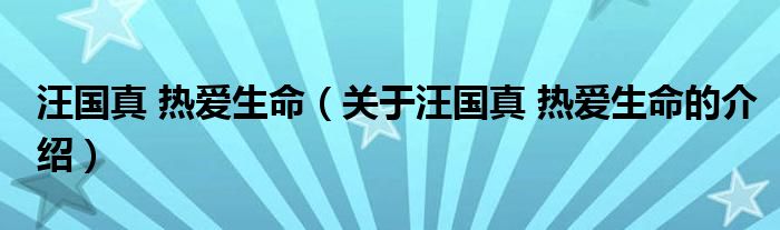 大家好,小新來為大家解答以上的問題。汪國真 熱愛生命,關(guān)于汪國真 熱愛生命的介紹很多人還不知道,現(xiàn)在讓我們一起來看看吧!