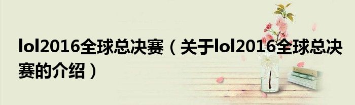 大家好,小新來(lái)為大家解答以上的問(wèn)題。lol2016全球總決賽,關(guān)于lol2016全球總決賽的介紹很多人還不知道,現(xiàn)在讓我們一起來(lái)看看吧!