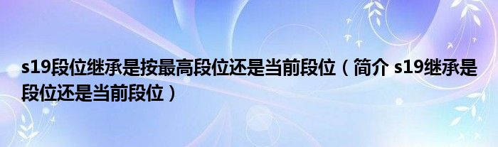 大家好,伊人來為大家解答以上問題。s19段位繼承是按最高段位還是當前段位,簡介 s19繼承是段位還是當前段位很多人還不知道,現(xiàn)在讓我們一起來看看吧!