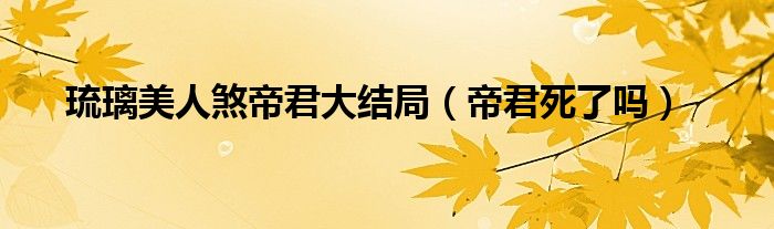大家好,伊人來(lái)為大家解答以上問(wèn)題。琉璃美人煞帝君大結(jié)局,帝君死了嗎很多人還不知道,現(xiàn)在讓我們一起來(lái)看看吧!