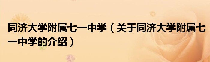 1、同濟(jì)大學(xué)附屬七一中學(xué)前身是創(chuàng)建于1905年的私立崇德女中,1953年由崇德女中、進(jìn)德女中、晏摩氏女中分部合并為上海市第七女中,1958年改名為七一中學(xué),招收男女學(xué)生。
