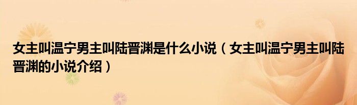 大家好,伊人來為大家解答以上問題。女主叫溫寧男主叫陸晉淵是什么小說,女主叫溫寧男主叫陸晉淵的小說介紹很多人還不知道,現(xiàn)在讓我們一起來看看吧!