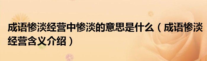 1、成語“慘淡經(jīng)營”是中國的成語,拼音是C m: n d n j和ng y ng,原意是苦心構(gòu)思,現(xiàn)在用來形容煞費苦心去做一件事?!皯K淡”就是辛苦。