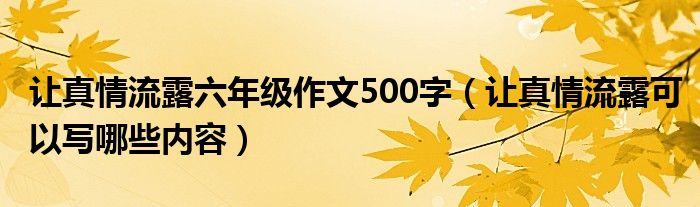 大家好,伊人來為大家解答以上問題。讓真情流露六年級作文500字,讓真情流露可以寫哪些內(nèi)容很多人還不知道,現(xiàn)在讓我們一起來看看吧!