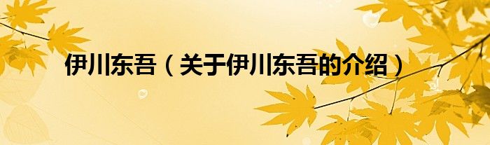 大家好,小新來為大家解答以上的問題。伊川東吾,關(guān)于伊川東吾的介紹很多人還不知道,現(xiàn)在讓我們一起來看看吧!