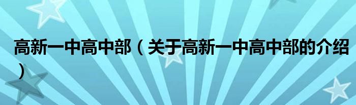 大家好,小新來為大家解答以上的問題。高新一中高中部,關(guān)于高新一中高中部的介紹很多人還不知道,現(xiàn)在讓我們一起來看看吧!