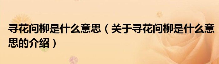 大家好,小新來為大家解答以上的問題。尋花問柳是什么意思,關(guān)于尋花問柳是什么意思的介紹很多人還不知道,現(xiàn)在讓我們一起來看看吧!