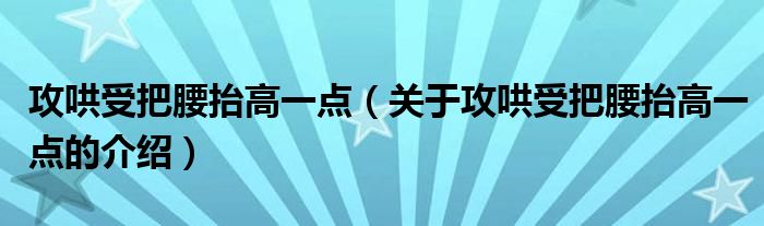 大家好,小新來為大家解答以上的問題。攻哄受把腰抬高一點(diǎn),關(guān)于攻哄受把腰抬高一點(diǎn)的介紹很多人還不知道,現(xiàn)在讓我們一起來看看吧!
