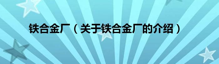 大家好,小新來為大家解答以上的問題。鐵合金廠,關(guān)于鐵合金廠的介紹很多人還不知道,現(xiàn)在讓我們一起來看看吧!