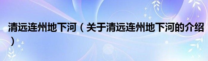 大家好,小新來為大家解答以上的問題。清遠連州地下河,關(guān)于清遠連州地下河的介紹很多人還不知道,現(xiàn)在讓我們一起來看看吧!