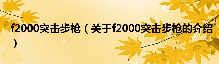 大家好,小新來(lái)為大家解答以上的問(wèn)題。f2000突擊步槍,關(guān)于f2000突擊步槍的介紹很多人還不知道,現(xiàn)在讓我們一起來(lái)看看吧!