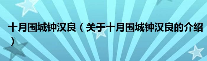 大家好,小新來為大家解答以上的問題。十月圍城鐘漢良,關(guān)于十月圍城鐘漢良的介紹很多人還不知道,現(xiàn)在讓我們一起來看看吧!