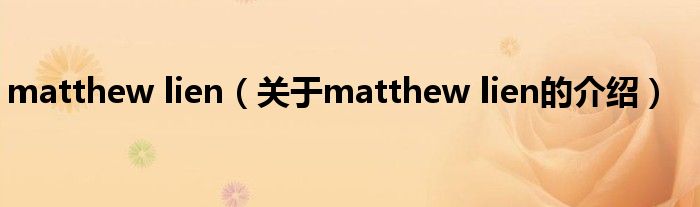 大家好,小新來為大家解答以上的問題。matthew lien,關于matthew lien的介紹很多人還不知道,現(xiàn)在讓我們一起來看看吧!