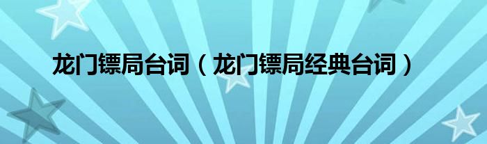 大家好,伊人來為大家解答以上問題。龍門鏢局臺詞,龍門鏢局經(jīng)典臺詞很多人還不知道,現(xiàn)在讓我們一起來看看吧!