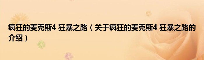 大家好,小新來為大家解答以上的問題。瘋狂的麥克斯4 狂暴之路,關(guān)于瘋狂的麥克斯4 狂暴之路的介紹很多人還不知道,現(xiàn)在讓我們一起來看看吧!