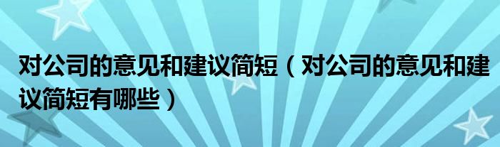 大家好,伊人來為大家解答以上問題。對公司的意見和建議簡短,對公司的意見和建議簡短有哪些很多人還不知道,現(xiàn)在讓我們一起來看看吧!