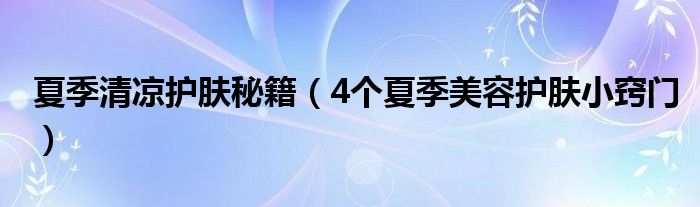 大家好,伊人來為大家解答以上問題。夏季清涼護膚秘籍,4個夏季美容護膚小竅門很多人還不知道,現(xiàn)在讓我們一起來看看吧!