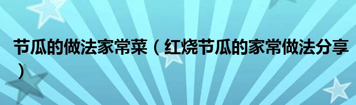 大家好,伊人來為大家解答以上問題。節(jié)瓜的做法家常菜,紅燒節(jié)瓜的家常做法分享很多人還不知道,現(xiàn)在讓我們一起來看看吧!