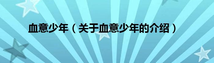 大家好,小新來為大家解答以上的問題。血意少年,關(guān)于血意少年的介紹很多人還不知道,現(xiàn)在讓我們一起來看看吧!
