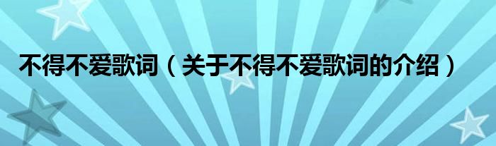 大家好,小新來為大家解答以上的問題。不得不愛歌詞,關(guān)于不得不愛歌詞的介紹很多人還不知道,現(xiàn)在讓我們一起來看看吧!