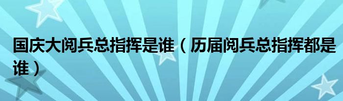 大家好,伊人來為大家解答以上問題。國慶大閱兵總指揮是誰,歷屆閱兵總指揮都是誰很多人還不知道,現(xiàn)在讓我們一起來看看吧!