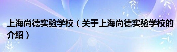 1、上海民辦尚德實驗學(xué)校,創(chuàng)建于2003年9月,由上海尚德教育投資發(fā)展有限公司投資興建,是一所小學(xué)、初中到高中的十二年寄宿制學(xué)校。