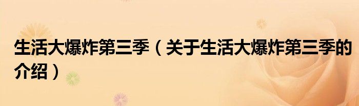 大家好,小新來為大家解答以上的問題。生活大爆炸第三季,關(guān)于生活大爆炸第三季的介紹很多人還不知道,現(xiàn)在讓我們一起來看看吧!