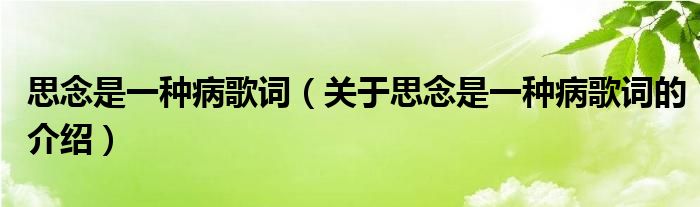 大家好,小新來為大家解答以上的問題。思念是一種病歌詞,關(guān)于思念是一種病歌詞的介紹很多人還不知道,現(xiàn)在讓我們一起來看看吧!