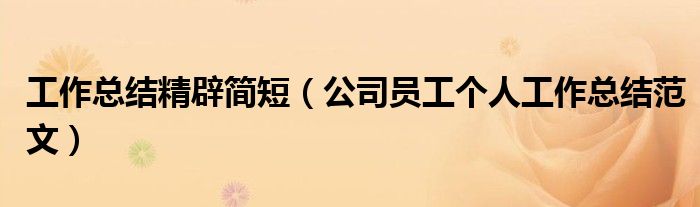 大家好,伊人來為大家解答以上問題。工作總結(jié)精辟簡短,公司員工個人工作總結(jié)范文很多人還不知道,現(xiàn)在讓我們一起來看看吧!