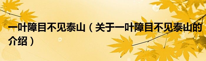 2、bù jiàn tài shān,漢語成語,意思是一片樹葉擋住了眼睛。