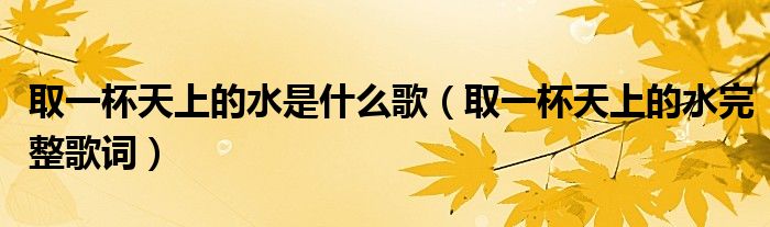 大家好,伊人來為大家解答以上問題。取一杯天上的水是什么歌,取一杯天上的水完整歌詞很多人還不知道,現(xiàn)在讓我們一起來看看吧!