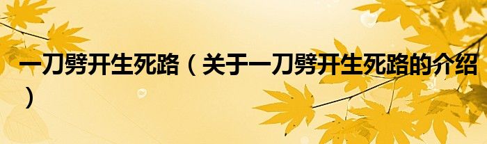 大家好,小新來為大家解答以上的問題。一刀劈開生死路,關(guān)于一刀劈開生死路的介紹很多人還不知道,現(xiàn)在讓我們一起來看看吧!