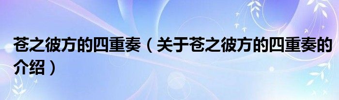 大家好,小新來為大家解答以上的問題。蒼之彼方的四重奏,關(guān)于蒼之彼方的四重奏的介紹很多人還不知道,現(xiàn)在讓我們一起來看看吧!