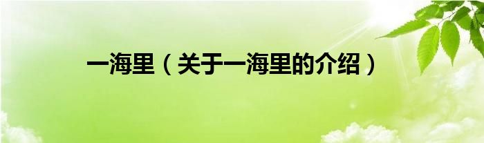大家好,小新來為大家解答以上的問題。一海里,關(guān)于一海里的介紹很多人還不知道,現(xiàn)在讓我們一起來看看吧!