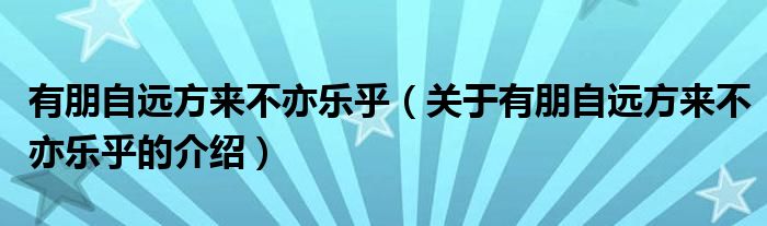 大家好,小新來為大家解答以上的問題。有朋自遠方來不亦樂乎,關(guān)于有朋自遠方來不亦樂乎的介紹很多人還不知道,現(xiàn)在讓我們一起來看看吧!
