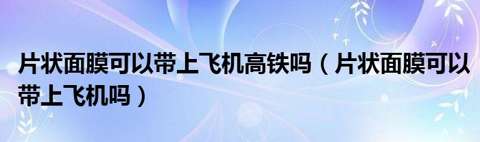 大家好,小生來(lái)為大家講解下。片狀面膜可以帶上飛機(jī)高鐵嗎,片狀面膜可以帶上飛機(jī)嗎很多人還不知道,現(xiàn)在讓我們一起來(lái)看看吧!