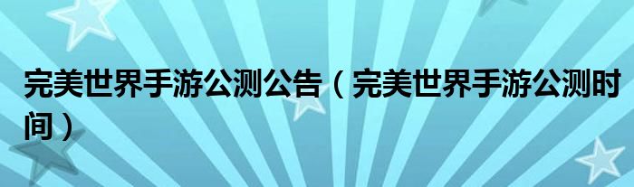 摘要大家好,小生來為大家講解下。完美世界手游公測公告,完美世界手游公測時間很多人還不知道,現(xiàn)在讓我們一起來看看吧!1、很多朋友都在期待