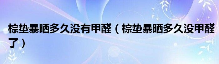 大家好,小生來為大家講解下。棕墊暴曬多久沒有甲醛,棕墊暴曬多久沒甲醛了很多人還不知道,現(xiàn)在讓我們一起來看看吧!
