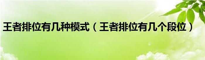 大家好,小生來為大家講解下。王者排位有幾種模式,王者排位有幾個段位很多人還不知道,現(xiàn)在讓我們一起來看看吧!