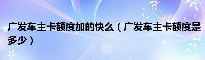 大家好,小生來為大家講解下。廣發(fā)車主卡額度加的快么,廣發(fā)車主卡額度是多少很多人還不知道,現(xiàn)在讓我們一起來看看吧!