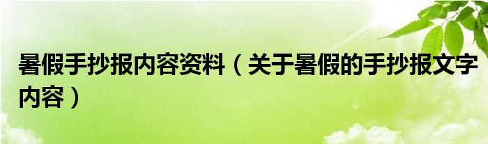 大家好,伊人來為大家解答以上問題。暑假手抄報內(nèi)容資料,關(guān)于暑假的手抄報文字內(nèi)容很多人還不知道,現(xiàn)在讓我們一起來看看吧!