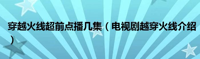 大家好,伊人來為大家解答以上問題。穿越火線超前點(diǎn)播幾集,電視劇越穿火線介紹很多人還不知道,現(xiàn)在讓我們一起來看看吧!