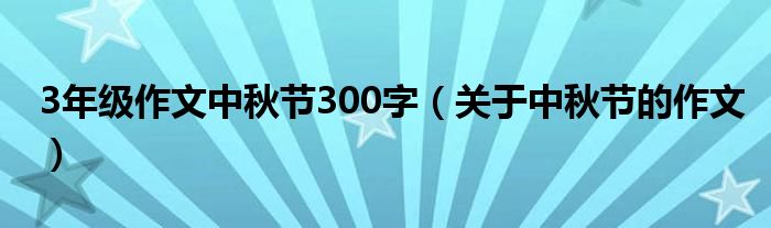 大家好,伊人來為大家解答以上問題。3年級作文中秋節(jié)300字,關(guān)于中秋節(jié)的作文很多人還不知道,現(xiàn)在讓我們一起來看看吧!