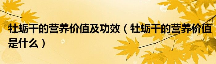 摘要大家好,小教來為大家解答以上的問題。牡蠣干的營養(yǎng)價值及功效,牡蠣干的營養(yǎng)價值是什么很多人還不知道,現(xiàn)在讓我們一起來看看吧!牡蠣干的