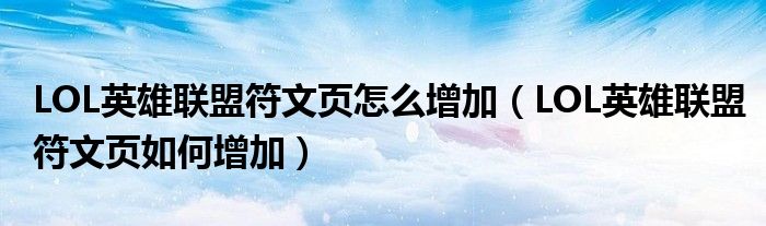 摘要大家好,伊人來為大家解答以上問題。LOL英雄聯(lián)盟符文頁怎么增加,LOL英雄聯(lián)盟符文頁如何增加很多人還不知道,現(xiàn)在讓我們一起來看看吧!1、
