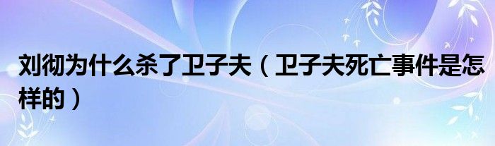 大家好,伊人來為大家解答以上問題。劉徹為什么殺了衛(wèi)子夫,衛(wèi)子夫死亡事件是怎樣的很多人還不知道,現(xiàn)在讓我們一起來看看吧!