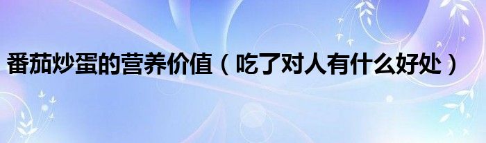 大家好,伊人來為大家解答以上問題。番茄炒蛋的營養(yǎng)價(jià)值,吃了對人有什么好處很多人還不知道,現(xiàn)在讓我們一起來看看吧!