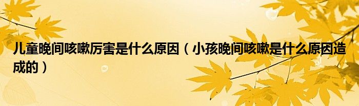 大家好,小教來為大家解答以上的問題。兒童晚間咳嗽厲害是什么原因,小孩晚間咳嗽是什么原因造成的很多人還不知道,現(xiàn)在讓我們一起來看看吧!